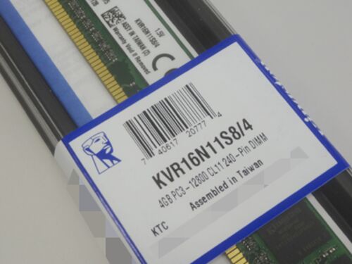 Kingston KVR16N11S8/4.税込み4,380円ナリ. PC3-12800(DDR3-1600)unbuffered DIMM 4GBモジュール. 使用されているチップは512M x 8個.single bankで構成. 約2年前に同等製品を購入したときは,4GBモジュール1枚単価が1,690円. 知らぬ間に,DRAM価格…
